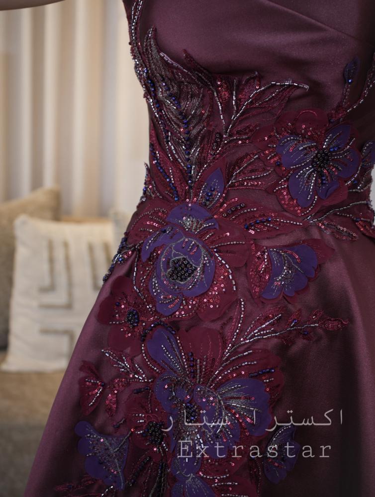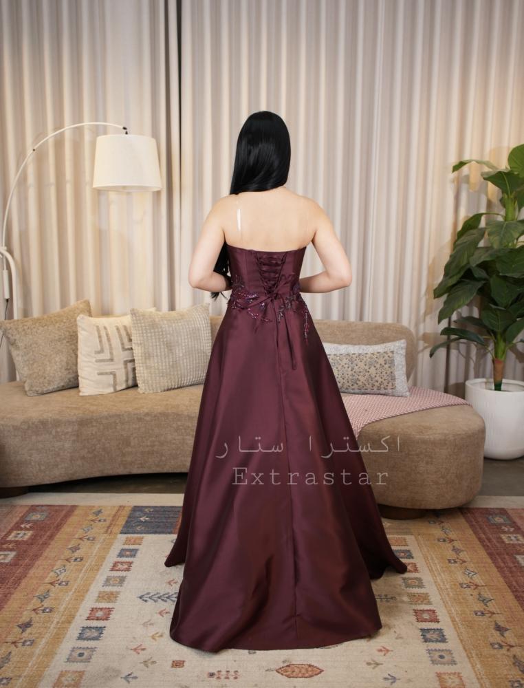 فستان سهرة عودي طويل بدون أكمام مطرز بخرز وترتر