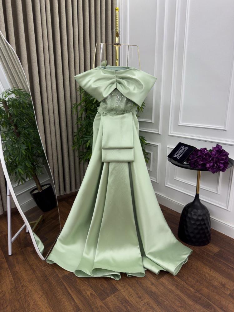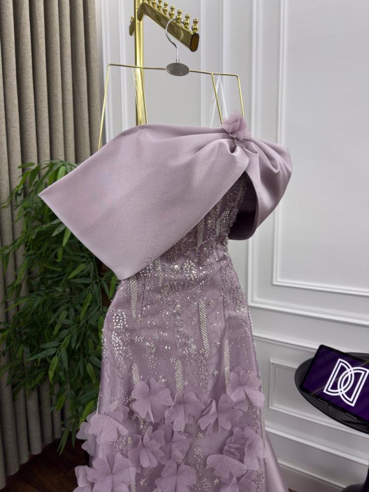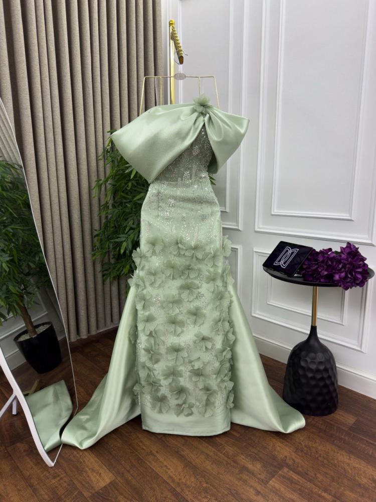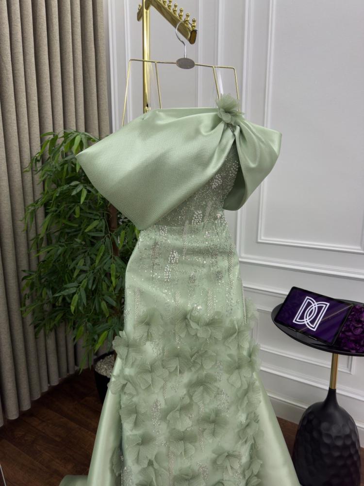 فستان سهره طويل بتطريز مورد بكلفه بذيل ميكادو