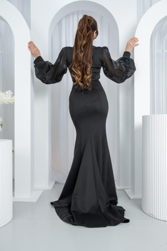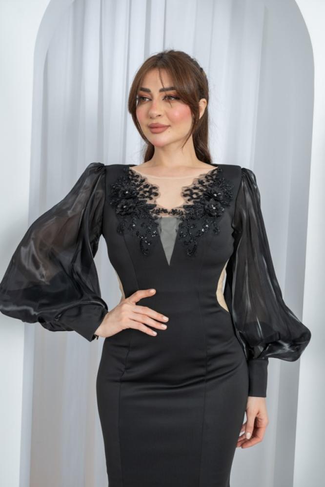 الأكمام: منفوشة من الشيفون الشفاف.
