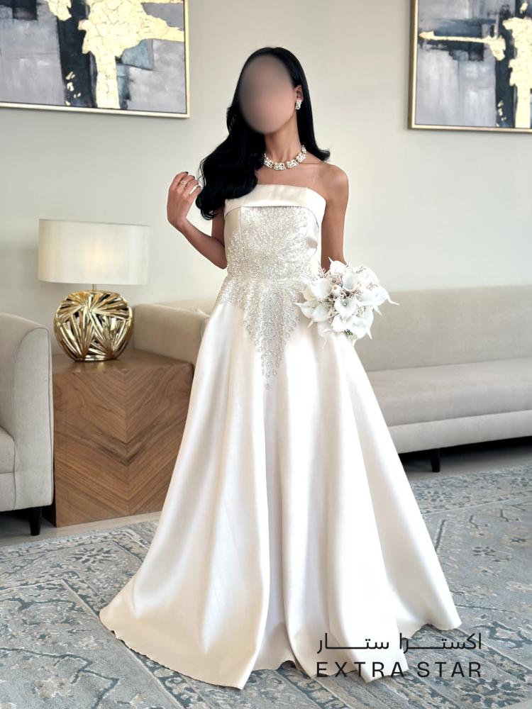 فستان سهرة طويل بتصميم توب مع تطريز فخم