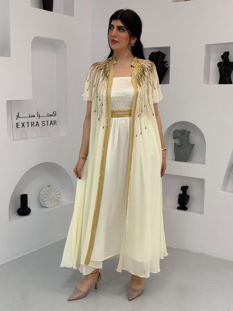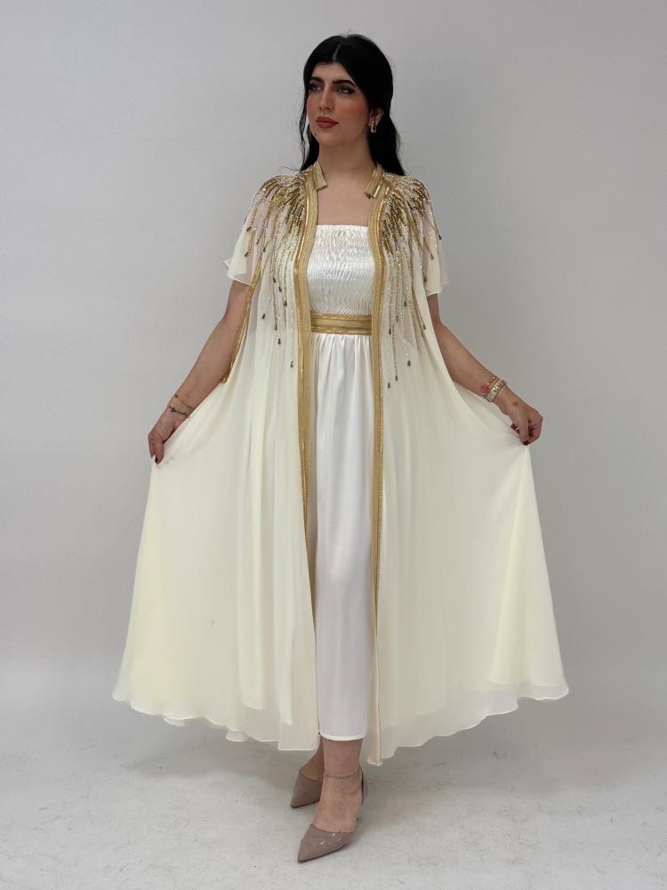 - تصميم أنيق وفاخر: جلابية مكونة من قطعتين بتصميم عصري ورائع من قماش الشيفون الخفيف.
